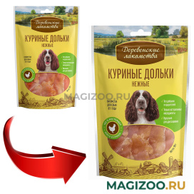 Эти нежные, сочные дольки из куриного мяса высшей категории станут любимым лакомством Вашей собаки.