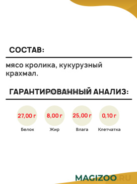 Состав: мясо кролика, кукурузный крахмал.