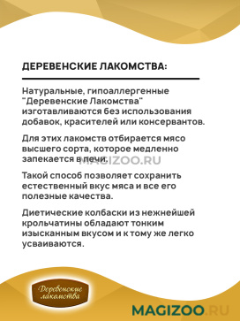 Натуральные, гипоаллергенные "Деревенские Лакомства" изготавливаются без использования добавок, красителей или консервантов.
