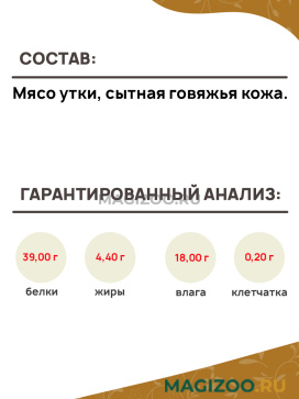 Состав: мясо утки, сытная говяжья кожа.