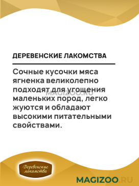 Сочные кусочки мяса ягненка великолепно подходят для угощения маленьких пород, легко жуются и обладают высокими питательными свойствами.