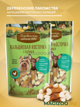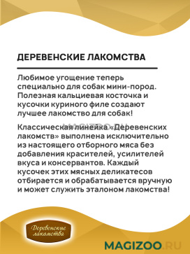 Любимое угощение теперь специально для собак мини-пород. Полезная кальциевая косточка и кусочки куриного филе создают лучшее лакомство для собак!