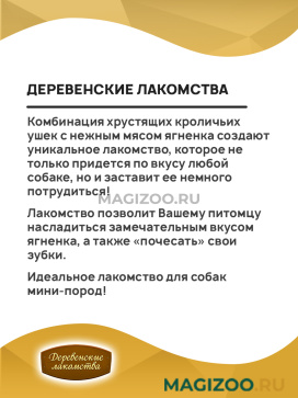 Лакомства ДЕРЕВЕНСКИЕ для собак маленьких пород уши кроличьи с мясом ягненка (55 гр)