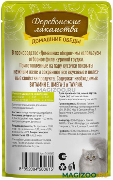 Полноценный обед из сочных кусочков курицы, приготовленных на пару и покрытых натуральным желе — это то, что так нравится всем кошкам без исключения. Такая еда будет радовать вашего любимца и придаст сил для новых свершений.