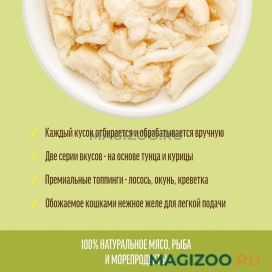 - В основе рецептов для кошек — лучшие мясные и рыбные продукты в идеальном сочетании с полезными пищевыми добавками: витамином Е, таурином и рыбьим жиром.