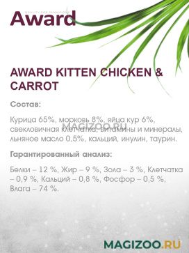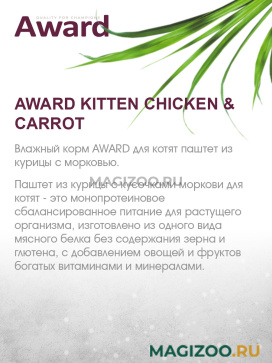 Влажный корм AWARD для котят паштет из курицы с морковью.