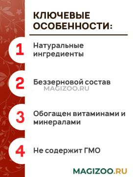 Для изготовления корма использовано отборное мясо и мясные субпродукты первой категории от проверенных поставщиков.