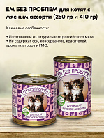 Полнорационный корм для котят с мясным ассорти.