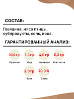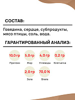 Говядина, мясо птицы, сердце, субпродукты, соль, вода.