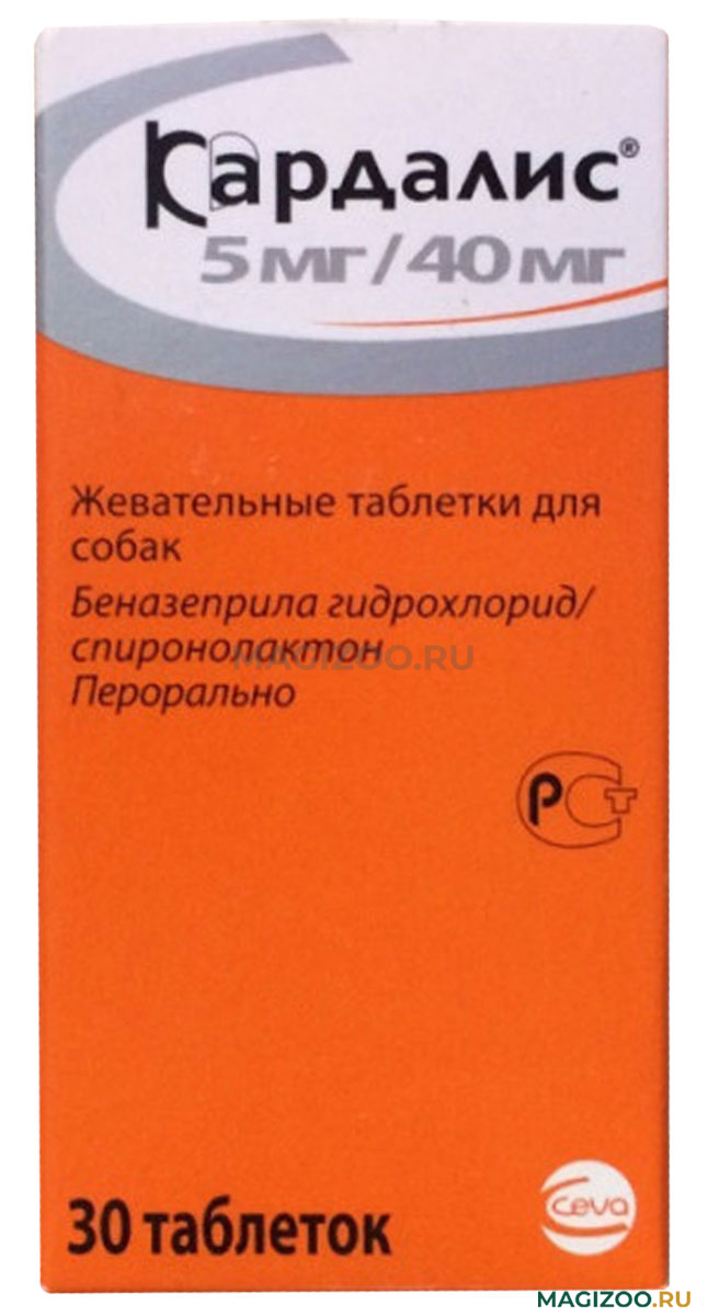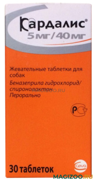 Кардалис применяют собакам для лечения застойной сердечной недостаточности при хронической дегенерации клапанов сердца.