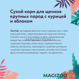 Florida Chicken and Apple - сухой корм супер - премиум класса с курицей и яблоком для щенков крупных пород. Сбалансированное полнорационное питание, способствующее правильному развитию щенка.