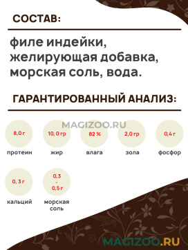 Состав: филе индейки, желирующая добавка, морская соль, вода.
