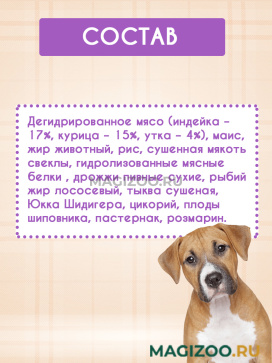 Дегидрированное мясо (индейка - 17%, курица - 15%, утка - 4%).