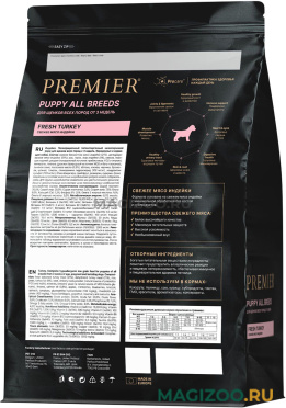 Полнорационный сухой корм супер-премиум класса на основе свежего мяса индейки для щенков всех пород с 3-недельного возраста, беременных и кормящих собак.