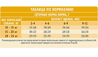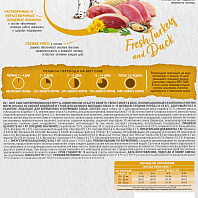 Дегидрированное мясо теленка 28%, сушеный картофель, дробленый зеленый горошек, гидролизированное мясо оленя 8%, куриный жир (источник Омега-3, Омега-6), натуральная вкусовая добавка из куриной печени, витаминно-минеральный премикс, пивные дрожжи (источник маннанолигосахаридов и витамина В12), сухая пульпа сахарной свеклы (натуральный пребиотик), льняное семя, лососевый жир (источник витаминов А, D), высушенное цельное яйцо, ламинария (источник йода и витаминов РР), сушеная брусника (источник витамина С), розмарин (источник калия и магния), сушеный цикорий (натуральный источник пребиотиков и инулина), хлорелла (натуральный иммуномодулятор), глюкозамин из животных тканей, сульфат хондроитина, юкка Шидигера.