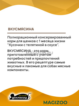 Полнорационный консервированный корм для щенков с 1 месяца жизни "Кусочки с телятиной в соусе".