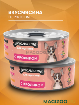 Полнорационный корм влажный для щенков ВКУСМЯСИНА с кроликом.