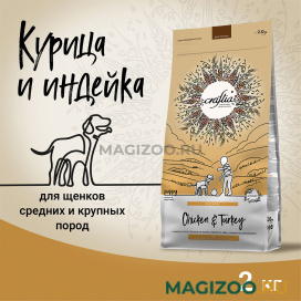 CRAFTIA NATURA сухой корм ультрапремиум класса для щенков средних и крупных пород с курицей и индейкой.