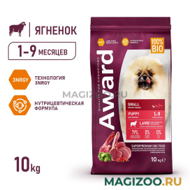 Сухой корм AWARD для щенков от 1 мес, беременных и кормящих сук мелких и мини пород с ягненком и индейкой с добавлением брокколи и брусники.
