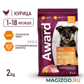 Сухой корм AWARD LARGE PUPPY для щенков от 1 месяца крупных пород с курицей и индейкой с добавлением тыквы и шиповника.