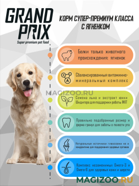 GRAND PRIX – корма для собак и кошек высшей категории качества. Очень важно, чтобы питомец получал с кормом полноценный набор питательных веществ и витаминов, ведь именно благодаря пище закладывается фундамент его здоровья. Полностью сбалансированное питание, обеспечивающее питомца полноценным набором жизненно важных элементов с основой из качественных белков и углеводов - залог его здоровья и красоты.