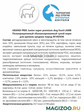 Корм Grand Prix Medium Junior для щенков собак средних пород разработан с учетом особенностей развития небольших собак в щенячьем и подростковом возрасте.
