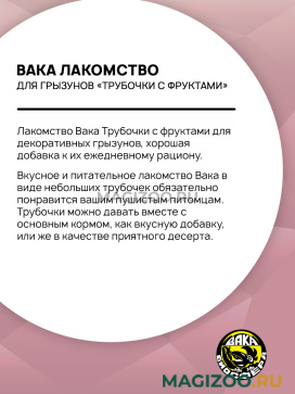 Лакомство Вака Трубочки с фруктами для декоративных грызунов, хорошая добавка к их ежедневному рациону.