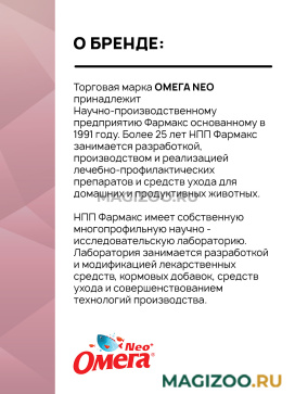 Торговая марка ОМЕГА NEO принадлежит Научно-производственному предприятию Фармакс основанному в 1991 году. Более 25 лет НПП Фармакс занимается разработкой, производством и реализацией лечебно-профилактических препаратов и средств ухода для домашних и продуктивных животных.