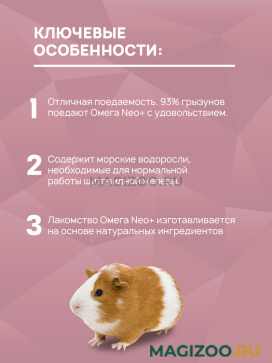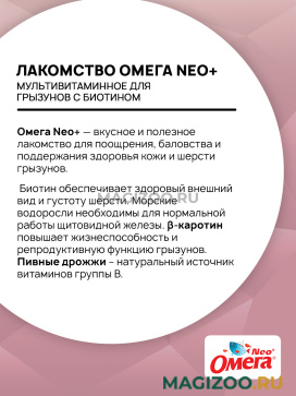 Омега Neo+ — вкусное и полезное лакомство для поощрения, баловства и поддержания здоровья кожи и шерсти грызунов.