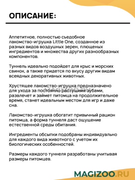 Little One туннель средний Вкусная лазейка- аппетитное, полностью съедобное лакомство-игрушка, созданное из разных видов воздушных зерен, плющеных ингредиентов.