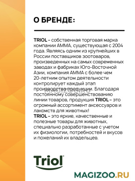Информация о составе и ингредиентах, цветовом решении, технических и иных характеристиках, стране-изготовителе, внешнем виде и комплекте поставки товара носит справочный характер и основана на последних доступных к моменту публикации сведениях. Доставка данного товара осуществляется во все регионы РФ.TRIOL – это яркие, качественные и полезные товары для животных, специально разработанные с учетом их физиологии, потребностей и вкусов и пожеланий их владельцев. В разработке товаров торговой марки TRIOL участвуют профессионалы в области разведения, воспитания и ухода за животными и именно благодаря этому вся продукция приносит радость Вашему питомцу, облегчает уход за ним и приносит в Вашу жизнь яркие краски!