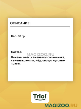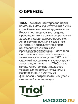 Информация о составе и ингредиентах, цветовом решении, технических и иных характеристиках, стране-изготовителе, внешнем виде и комплекте поставки товара носит справочный характер и основана на последних доступных к моменту публикации сведениях. Доставка данного товара осуществляется во все регионы РФ.TRIOL – это яркие, качественные и полезные товары для животных, специально разработанные с учетом их физиологии, потребностей и вкусов и пожеланий их владельцев. В разработке товаров торговой марки TRIOL участвуют профессионалы в области разведения, воспитания и ухода за животными и именно благодаря этому вся продукция приносит радость Вашему питомцу, облегчает уход за ним и приносит в Вашу жизнь яркие краски!
