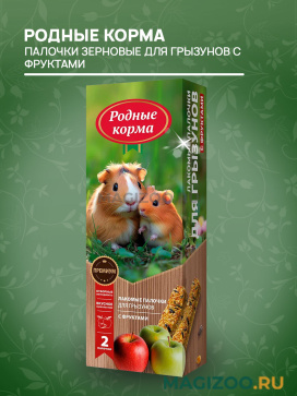 Лакомые палочки РОДНЫЕ КОРМА с фруктами для грызунов. Корм РОДНЫЕ КОРМА – покупай своё родноё!
