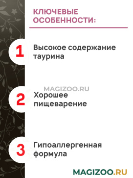 Таурин - незаменимая аминокислота, которая важна для сохранения остроты зрения и поддержания правильной работы сердца Вашего питомца.