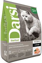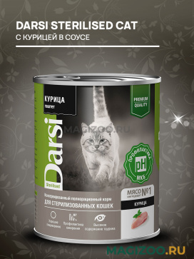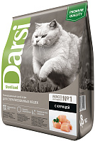 Полноценный сбалансированный рацион для взрослых кастрированных котов и стерилизованных кошек DARSI STERILISED – это вкусный и полезный паштет с курицей для Вашего питомца!