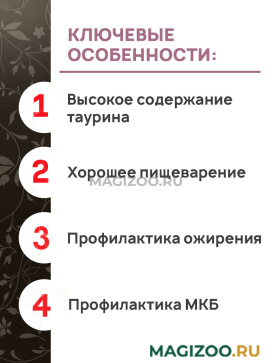 Таурин - незаменимая аминокислота, которая важна для сохранения остроты зрения и поддержания правильной работы сердца Вашего питомца.