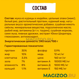 Мука из курицы и индейки, цельные злаки (маис), белый рис, растительный протеин,