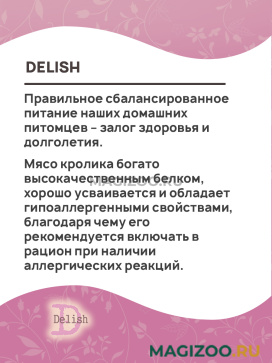 Информация о составе и ингредиентах, цветовом решении, технических и иных характеристиках, стране-изготовителе, внешнем виде и комплекте поставки товара носит справочный характер и основана на последних доступных к моменту публикации сведениях. Доставка данного товара осуществляется во все регионы РФ.Если Вы находитесь в поиске качественного и полезного корма, и не желаете переплачивать за бренд, то корма от компании Delish, гарантированно смогут удовлетворить аппетиты Вашего питомца, а также Ваши личные требования.