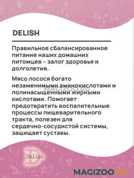 Информация о составе и ингредиентах, цветовом решении, технических и иных характеристиках, стране-изготовителе, внешнем виде и комплекте поставки товара носит справочный характер и основана на последних доступных к моменту публикации сведениях. Доставка данного товара осуществляется во все регионы РФ.Если Вы находитесь в поиске качественного и полезного корма, и не желаете переплачивать за бренд, то корма от компании Delish, гарантированно смогут удовлетворить аппетиты Вашего питомца, а также Ваши личные требования.