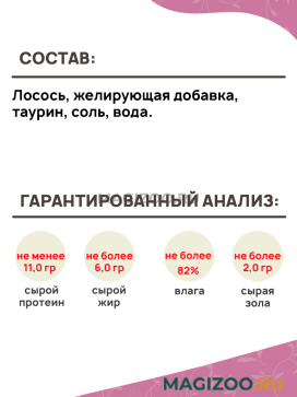 Лосось, желирующая добавка, таурин, соль, вода.