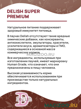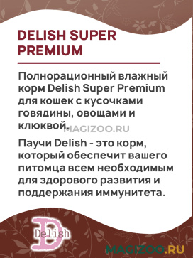 Паучи Delish - это корм, который обеспечит вашего питомца всем необходимым для здорового развития и поддержания иммунитета.