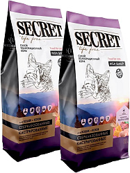 Инновационным решением корма секрет стало добавление натурального пробиотика Bacillus subtilis, способствующего оптимизации пищеварения и поддержке иммунитета кота и кошки, а также экстракта Юкки Шидигера, который снижает неприятный запах мочи и фекалий.