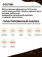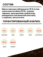 Консервы не содержат: субпродукты, злаки, глютен, гормоны, антибиотики, ГМО, сою и ароматизаторы.