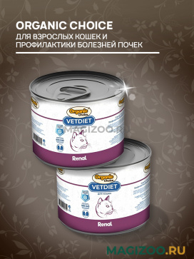 Диетический корм Organic Сhoice VET Renal (Ренал) для кошек предназначен для профилактического питания животных при почечной недостаточности.