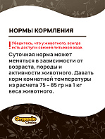 Давать корм комнатной температуры из расчета 30-50 гр. на 1 кг веса животного. Рекомендуется смешивать с кашами или овощами. После вскрытия потребительской упаковки продукт хранить в холодильнике не более 2 суток.