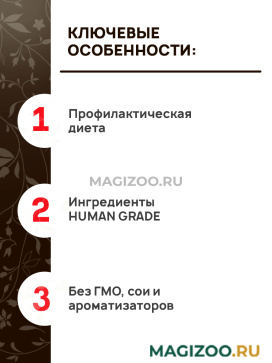 Информация о составе и ингредиентах, цветовом решении, технических и иных характеристиках, стране-изготовителе, внешнем виде и комплекте поставки товара носит справочный характер и основана на последних доступных к моменту публикации сведениях. Доставка данного товара осуществляется во все регионы РФ.Ингредиенты, из которых изготовлены корма, проходят тщательный отбор и соответствуют высоким мировым стандартам качества Human Grade - ингредиенты, которые предназначены для питания человека.
