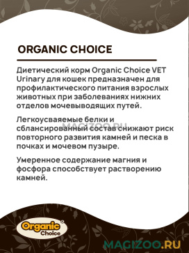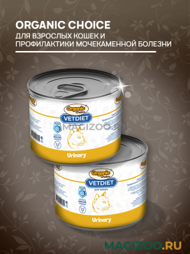 Диетический корм Organic Сhoice VET Urinary для кошек предназначен для профилактического питания взрослых животных при заболеваниях нижних отделов мочевыводящих путей.