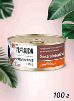 Влажный корм (консервы) FLORIDA PREVENTIVE LINE GASTROINTESTINAL для взрослых кошек при расстройствах пищеварения с перепелкой (100 гр)