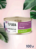 Влажный корм (консервы) FLORIDA PREVENTIVE LINE RENAL для взрослых кошек при хронической почечной недостаточности с ягненком (100 гр)