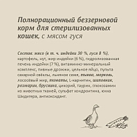 Полнорационный сухой корм для взрослых кастрированных котов и стерилизованных кошек с мясом гуся.